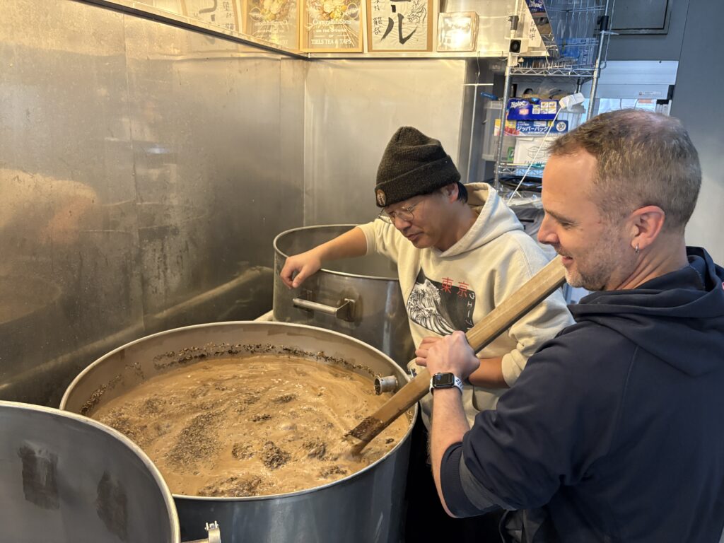 年間30種ほどを醸造しており、黒ビールの仕込みにはカナダ人のブラッドさんも参加する。